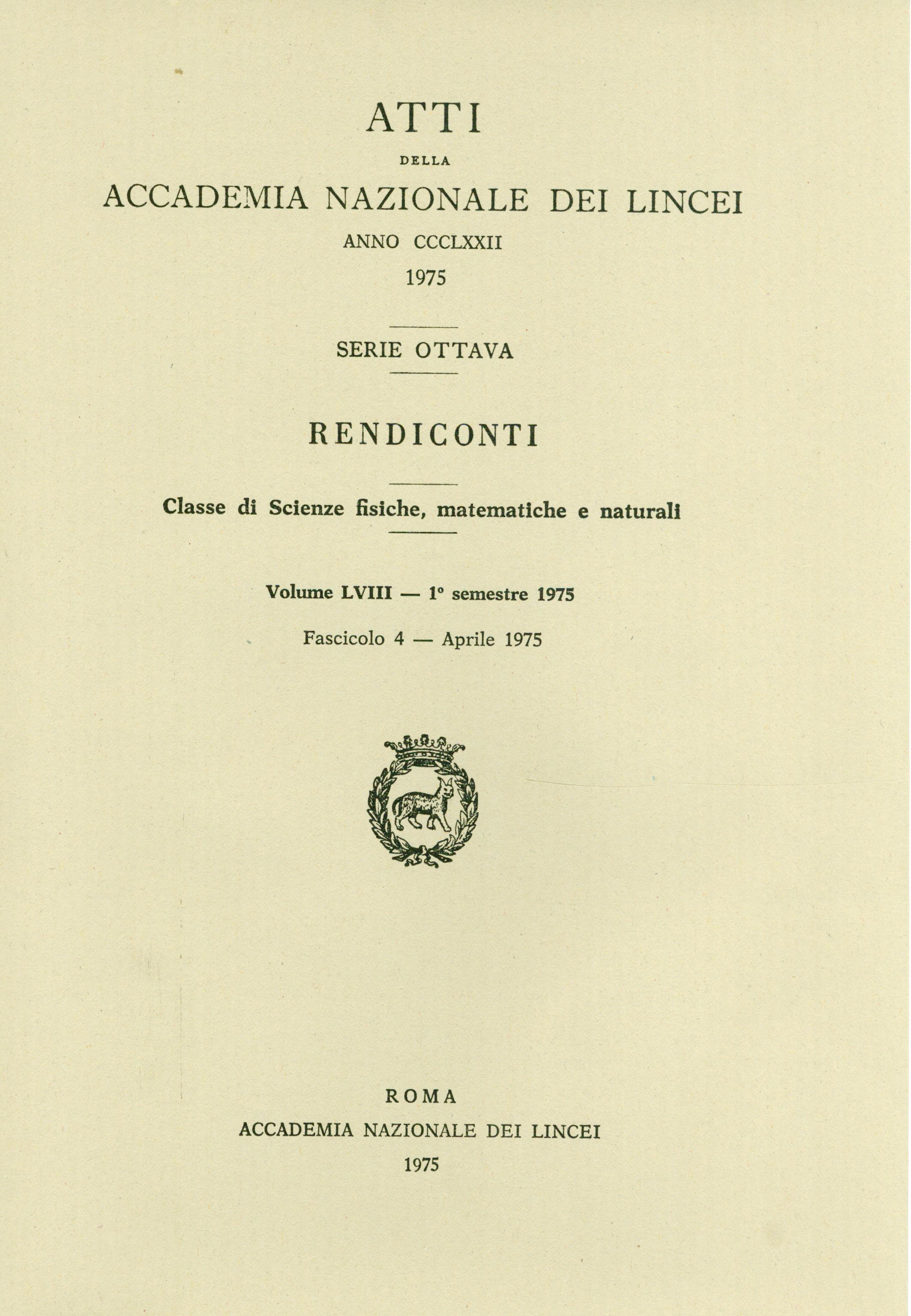 | Home -> Atti Accad. Naz. Lincei Cl. Sci. Fis. Mat. Natur. Rend., Serie 8 -> Vol. 58 (1975), n. 4 |