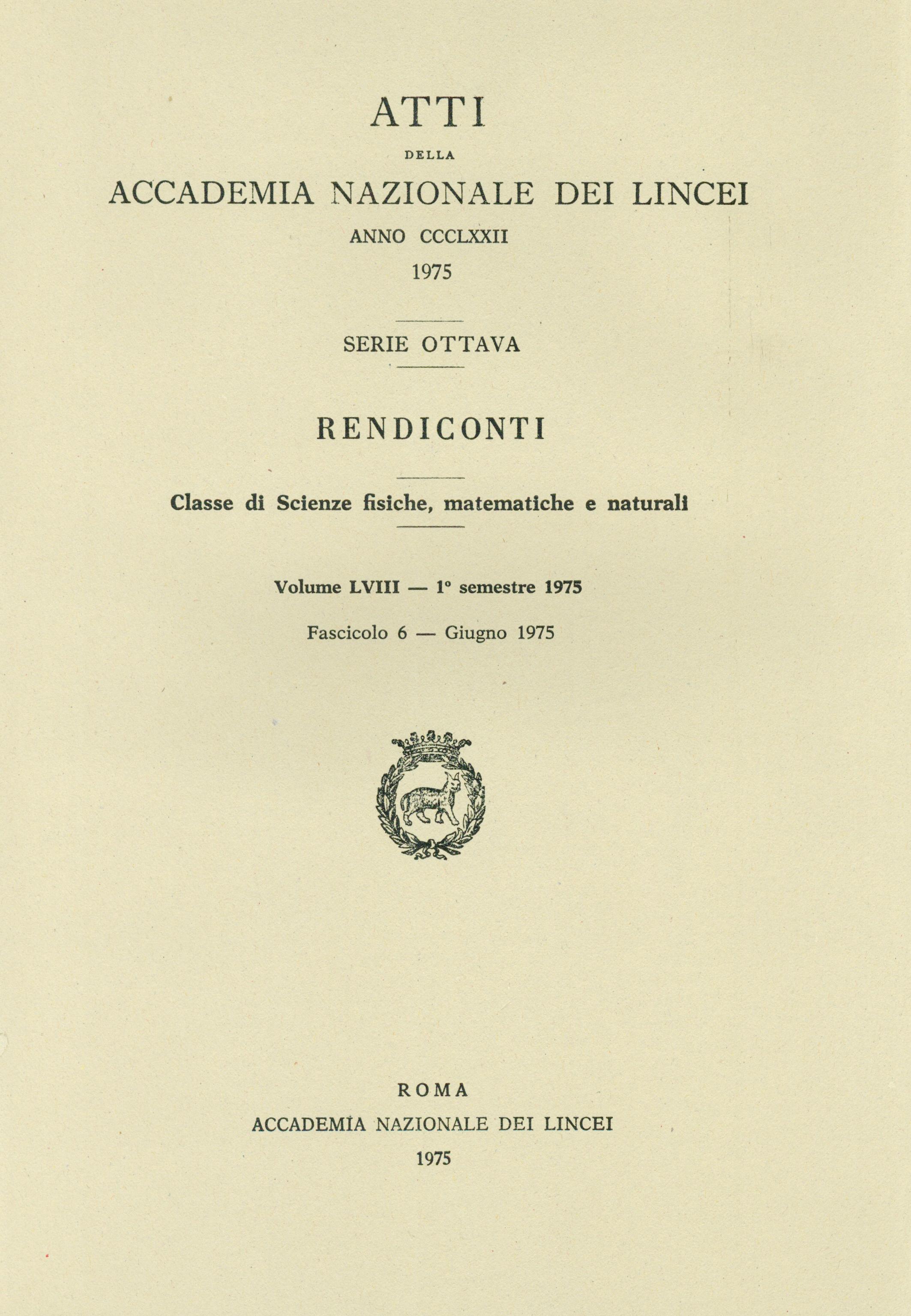 | Home -> Atti Accad. Naz. Lincei Cl. Sci. Fis. Mat. Natur. Rend., Serie 8 -> Vol. 58 (1975), n. 6 |